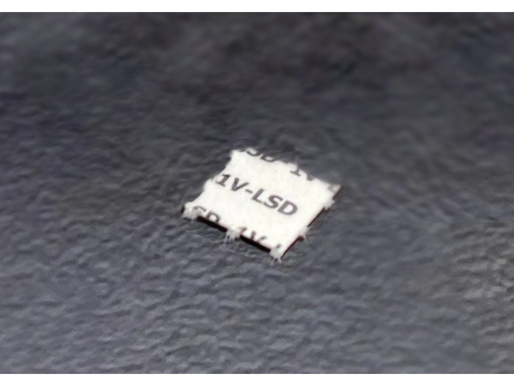 Blotter se zvýšeným obsahem 150 mikrogramů legální substance 1V-LSD.